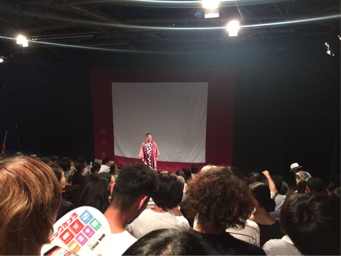 ヨーイドン!の本番まで、10日とちょっととなりました(๑¯◡¯๑) 暑いなーーー (๑°⌓°๑) ですが、まだ少しロボット組の本番はありますからね。先日は愛知の長久手まで行きまして、仕込んで本番やってバラしをしましたのです! 仕込み着はオジSTYLE☆ 名古屋ということで、ちょっとだけ実家が近い岐阜のゆずさんママから“天むす”のお差し入れっ♪ヾ('∀'o)ノ わーいっ!大好きー♡ お妃さまも大喜び♪♪♪ ホテルの隣には名古屋名物、山ちゃんの手羽先があったので、何人かで行きましたよ! 美味しかったー(*^ー^*) 胡椒がピリッと辛くて美味しいのと、ソース味の手羽先も甘辛くて美味しかったのですな!! そして、この公演先でいただいたお土産 おっちゃんにめっちゃ似てるお人形さんをいただきましたー♡ 翌日は移動日! ということで、後輩のかおるちゃんと海老フライを食べに行きましたですよ«٩(*´ ꒳ `*)۶» でかっ!!! 矢場とんって味噌カツの有名なお店の海老ふりゃーがめちゃくちゃ美味いんですけど 今回は、ファンの方に教えていただいた“まるは食堂”に行きました☆ 特大と普通の海老フライを単品で1ぴきずつ!! そして、大アサリ焼き♡ あと、きしめんも食べちゃった(笑) 冷やしきしめんで、すだちがかなりきいていて、かなりさっぱり!! 夏バテにはいーなー♡ 帰ってきたら、花園神社へ! 椿組のお芝居を観てきました! 花園神社にテントを立ている野外公演なんですね! これを30年間続けてこられたそーです!すげーなーーー! そして、開演前に売ってたアイス最中♡ 何気に後ろに鄭さんが写ってた♡ 暑かったー!熱気がすごかったーーー! なんだかすごいごっつい2日間でやんした!! というわけで、今日のお稽古頑張ってきまーーーす!